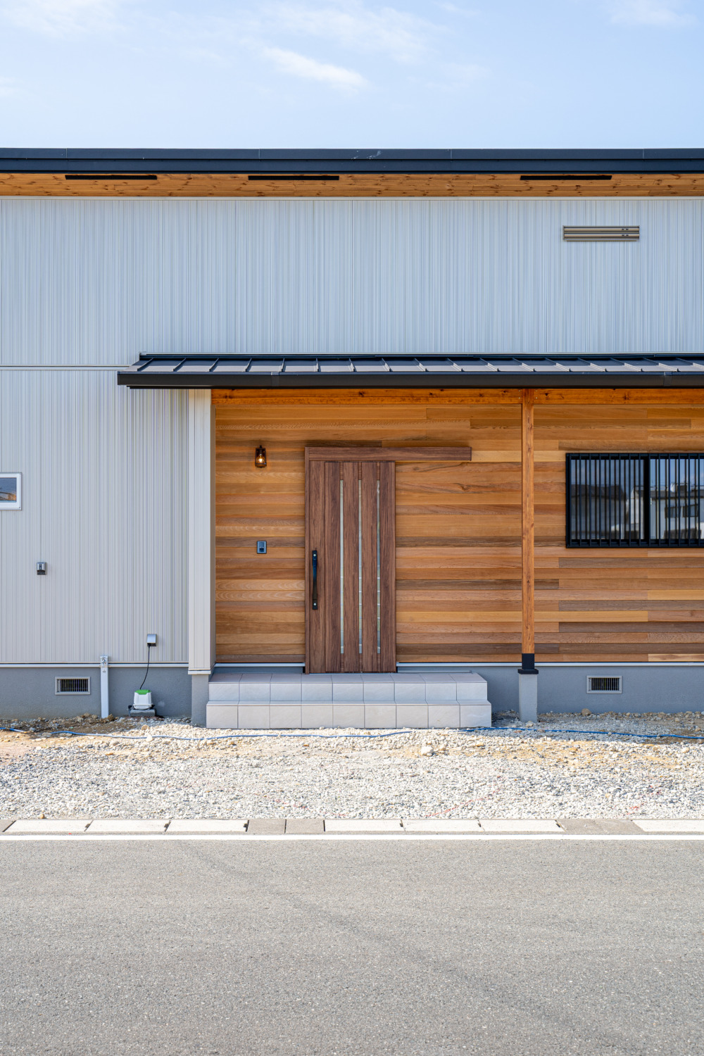 アクセントで玄関回りだけ板張りにするのもおしゃれですよね