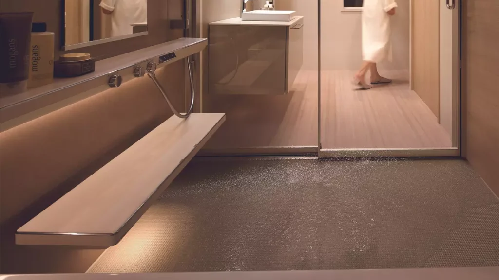 浴室床ワイパーは、お風呂に入ったあとに床に溜まる石鹸カスや角質汚れを、ワイパーのように掃いてくれる機能です。除菌水できれいにしてくれるので、ピンクカビの発生も抑えられます。結果的にお風呂掃除の手間も省ける優れた機能なのです。