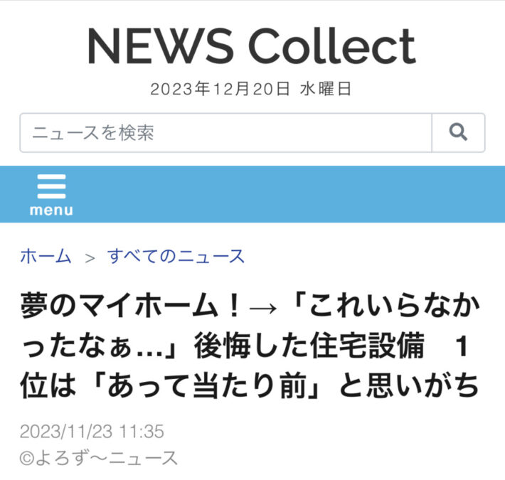 注文住宅に居住中の30歳以上55歳未満の男女1713人を対象に実施した「後悔した住宅設備」の調査結果を発表しました。