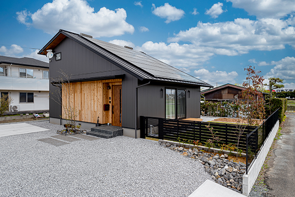 大きな屋根が印象的なシャープな外観。