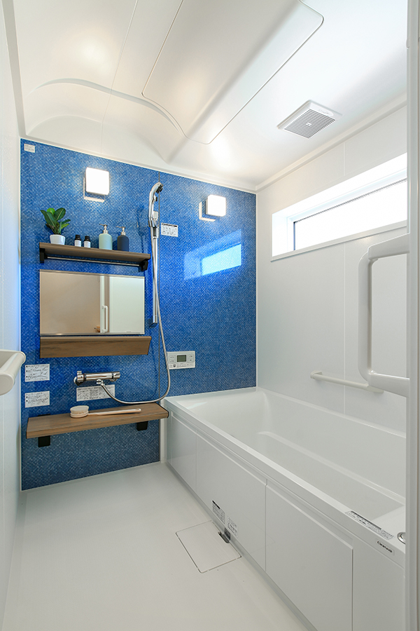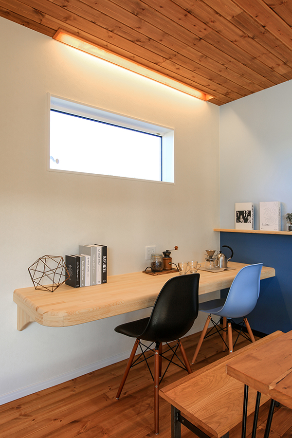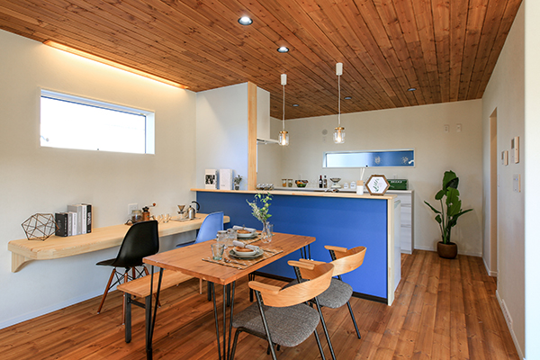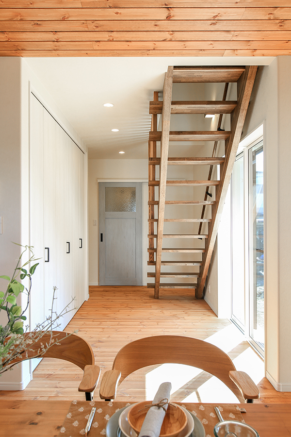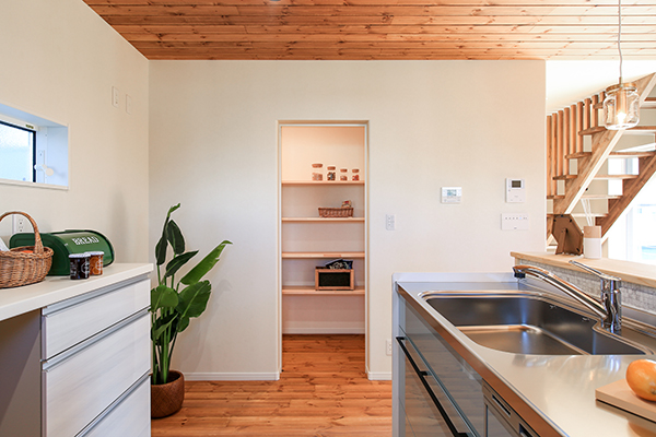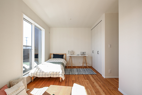 自然光や風といった自然のエネルギーを活用するこの設計手法により、家屋をL字型にすることで浴室・脱衣室を除く全室に日光が届くよう設計。さらに、風の通り道を考慮した位置に適切なサイズの窓を配置することで、季節を問わず快適に過ごせる住まいを実現しました。この手法は、平松建築の標準設計として取り入れています。