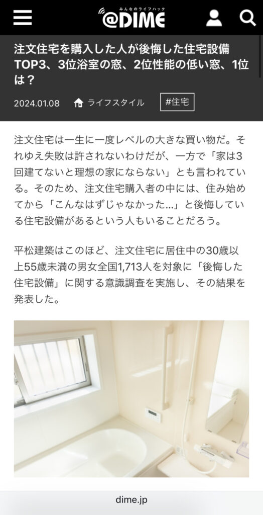 平松建築株式会社のプレスリリースが、@DIME(小学館)に掲載されました。
