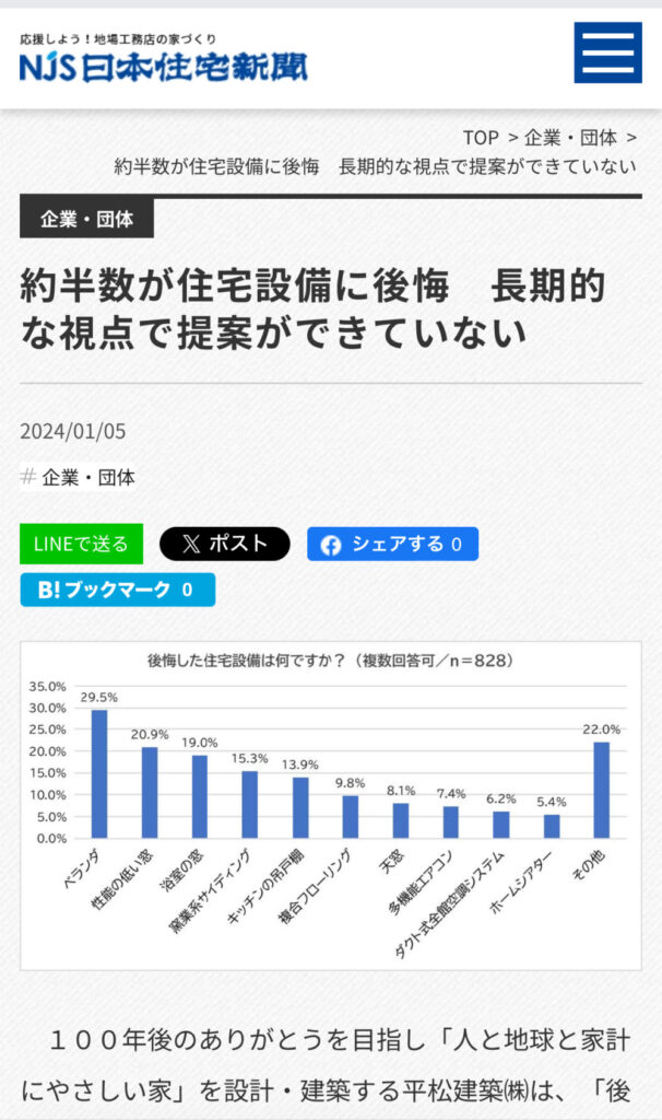 【NJS日本住宅新聞】約半数が住宅設備に後悔