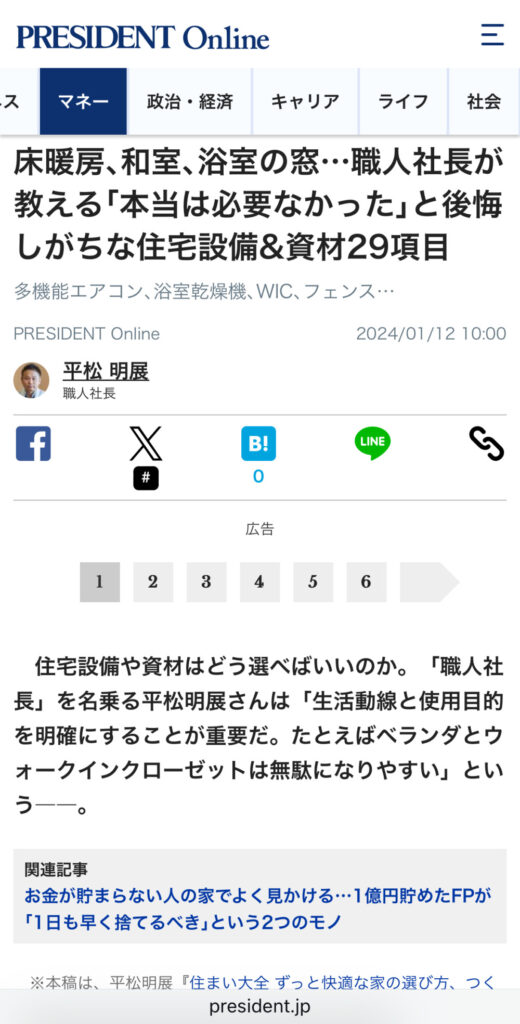 弊社の代表、平松明展が出版した「住まい大全」KADOKAWAの書籍がプレジデントオンラインに掲載されました。