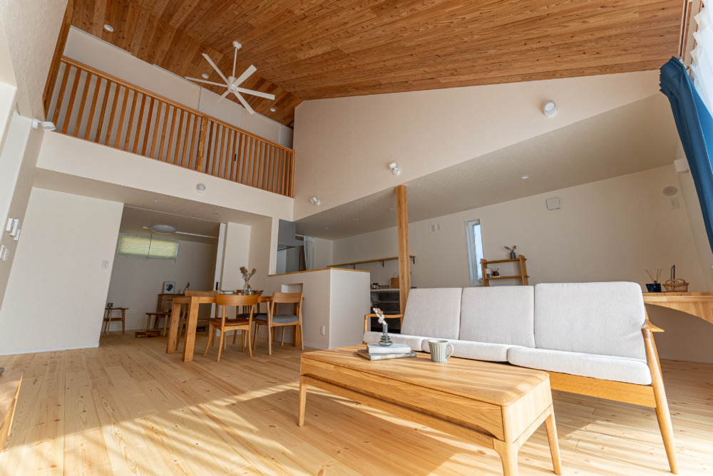 そんな中、Instagramで気になっていた「OOYANE」を見学したところ、吹き抜けリビングの開放感と空気感の良さに感動し規格住宅「OOYANE」をお選びいただきました。