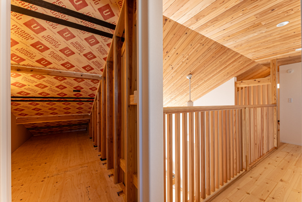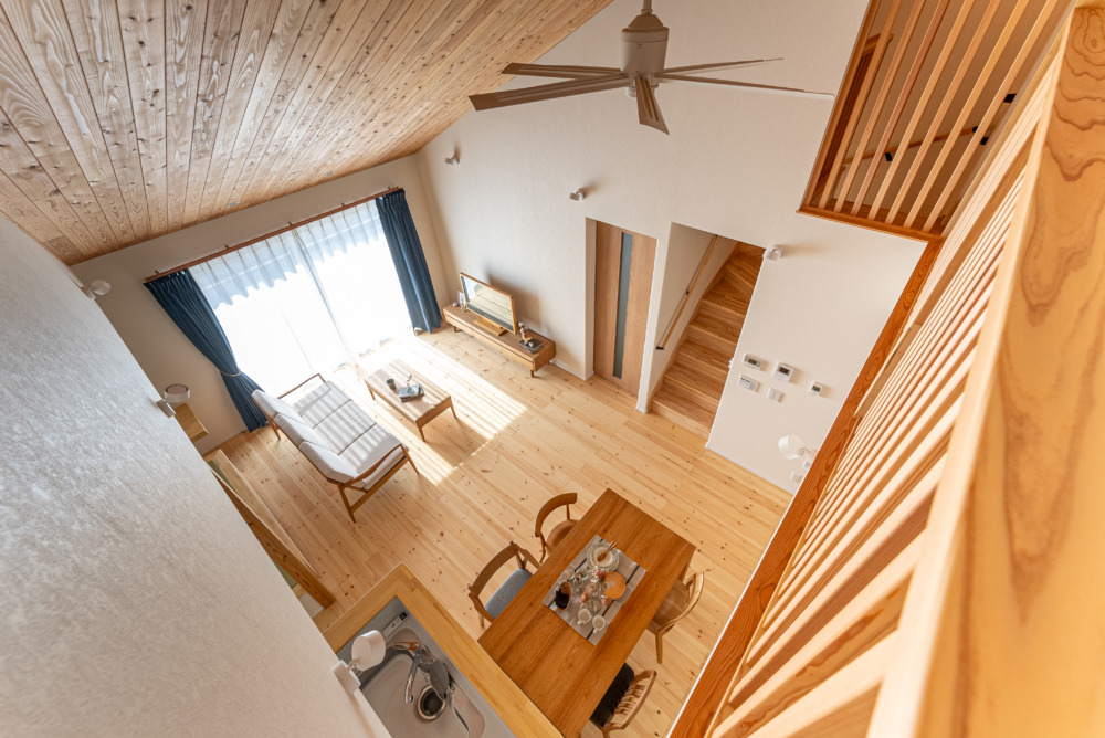 3. 勾配天井と吹き抜けで開放的