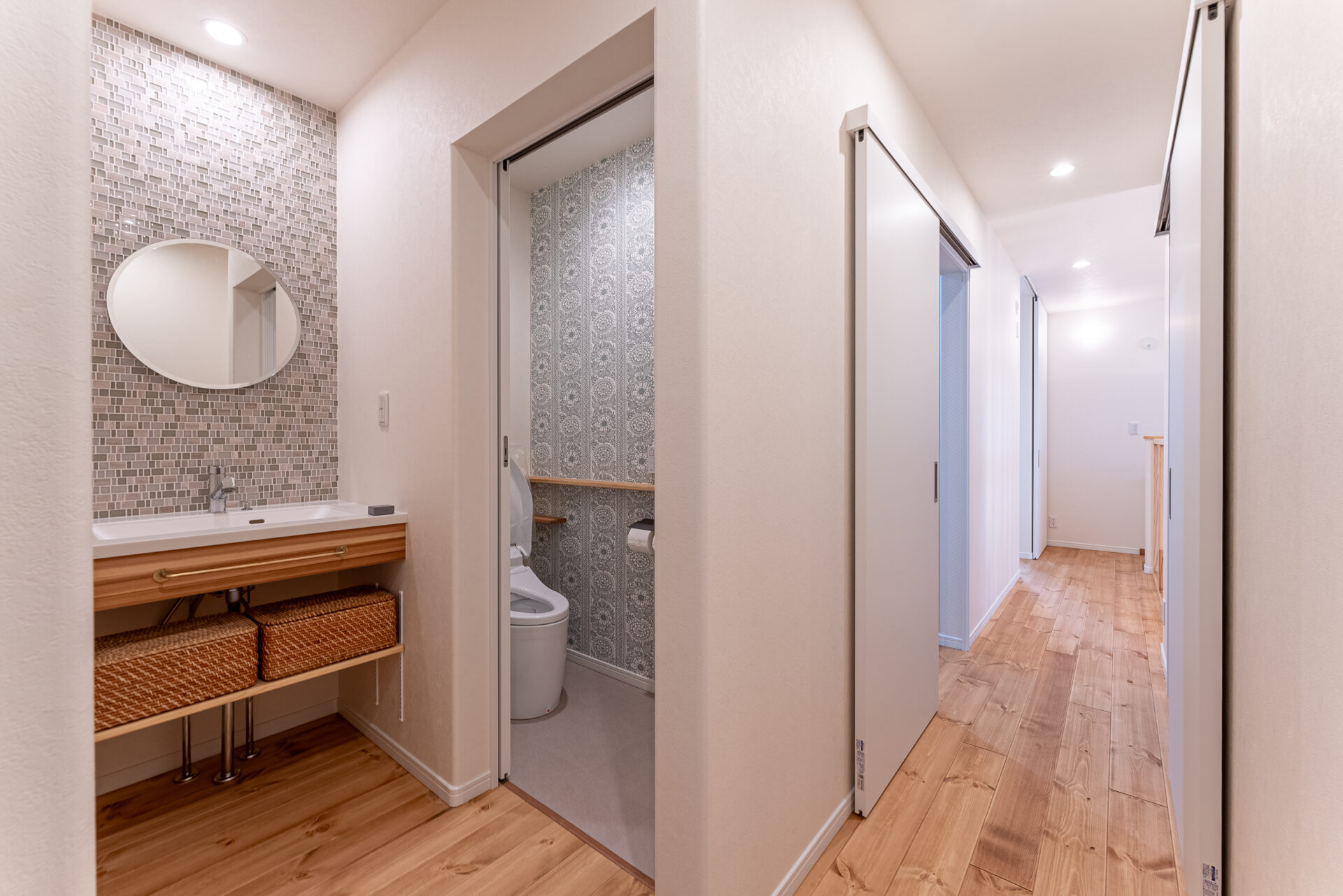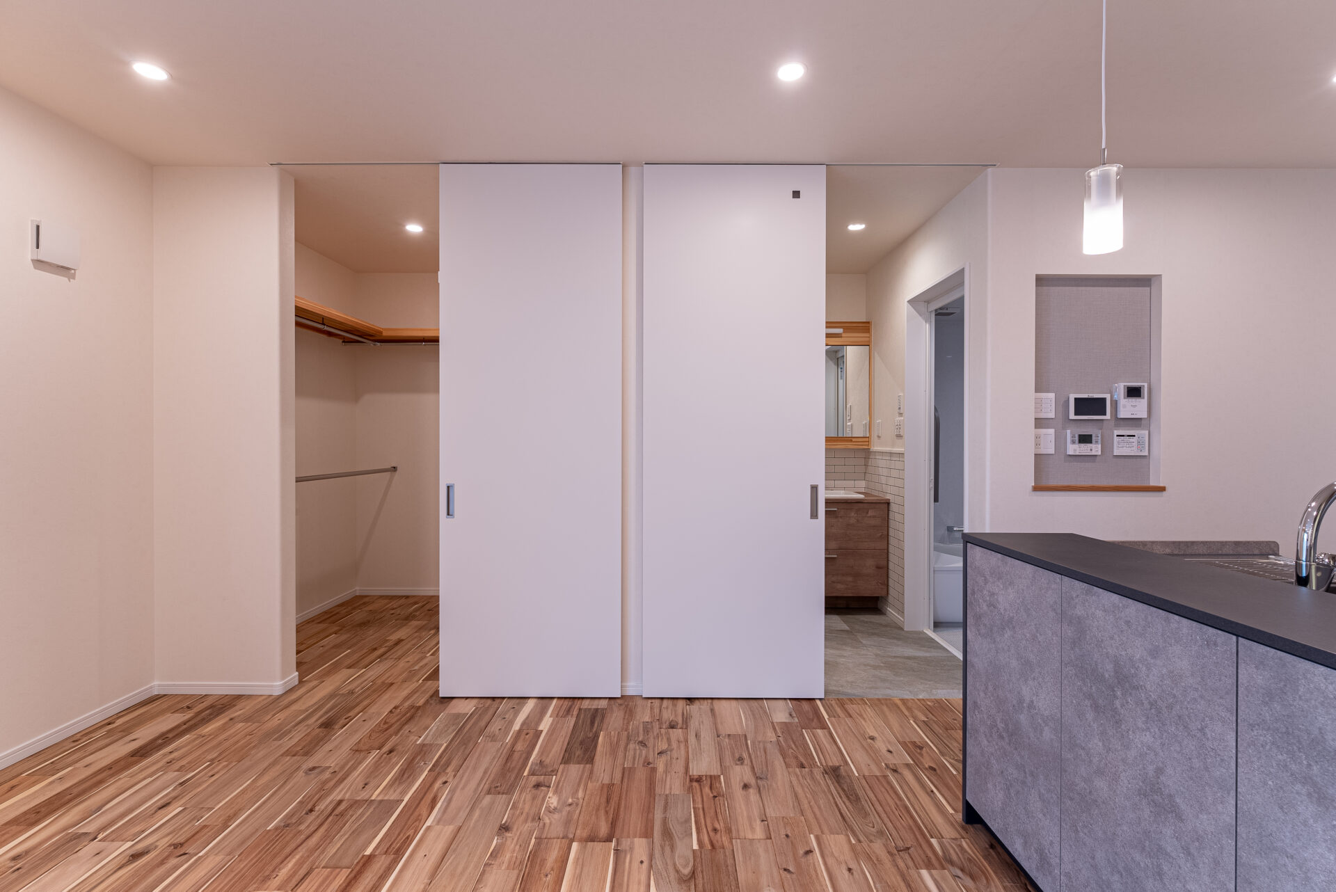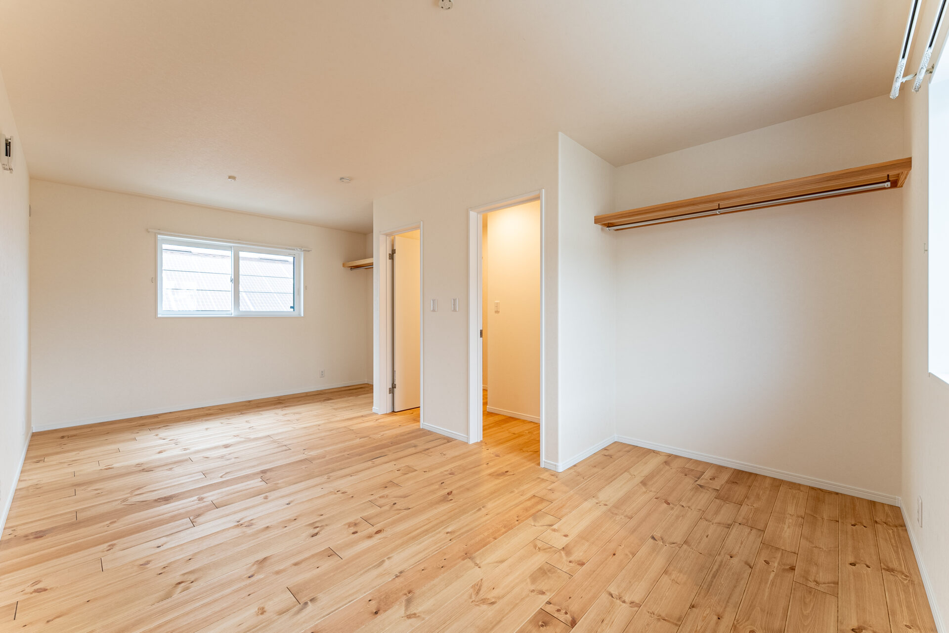 洗面脱衣室兼ランドリールームのすぐ隣にウォークインクローゼット。 洗って干してしまうが一箇所で完結できる快適洗濯動線で、家事にかかる時間を短縮することができます。 時短した分、家族との時間やひとりの時間、趣味の時間に費やすことができ、マイホーム生活がますます楽しくなりそうですね。