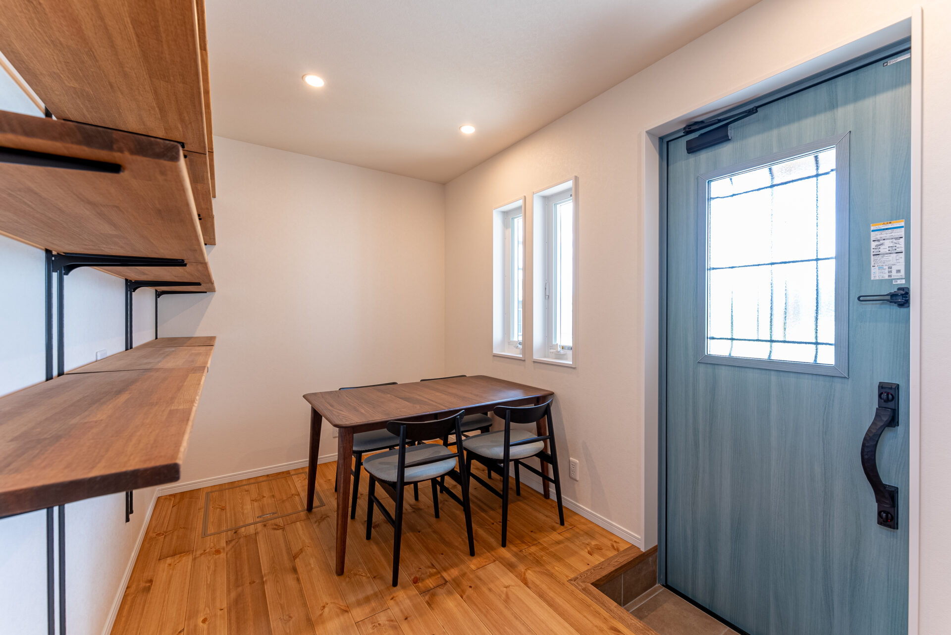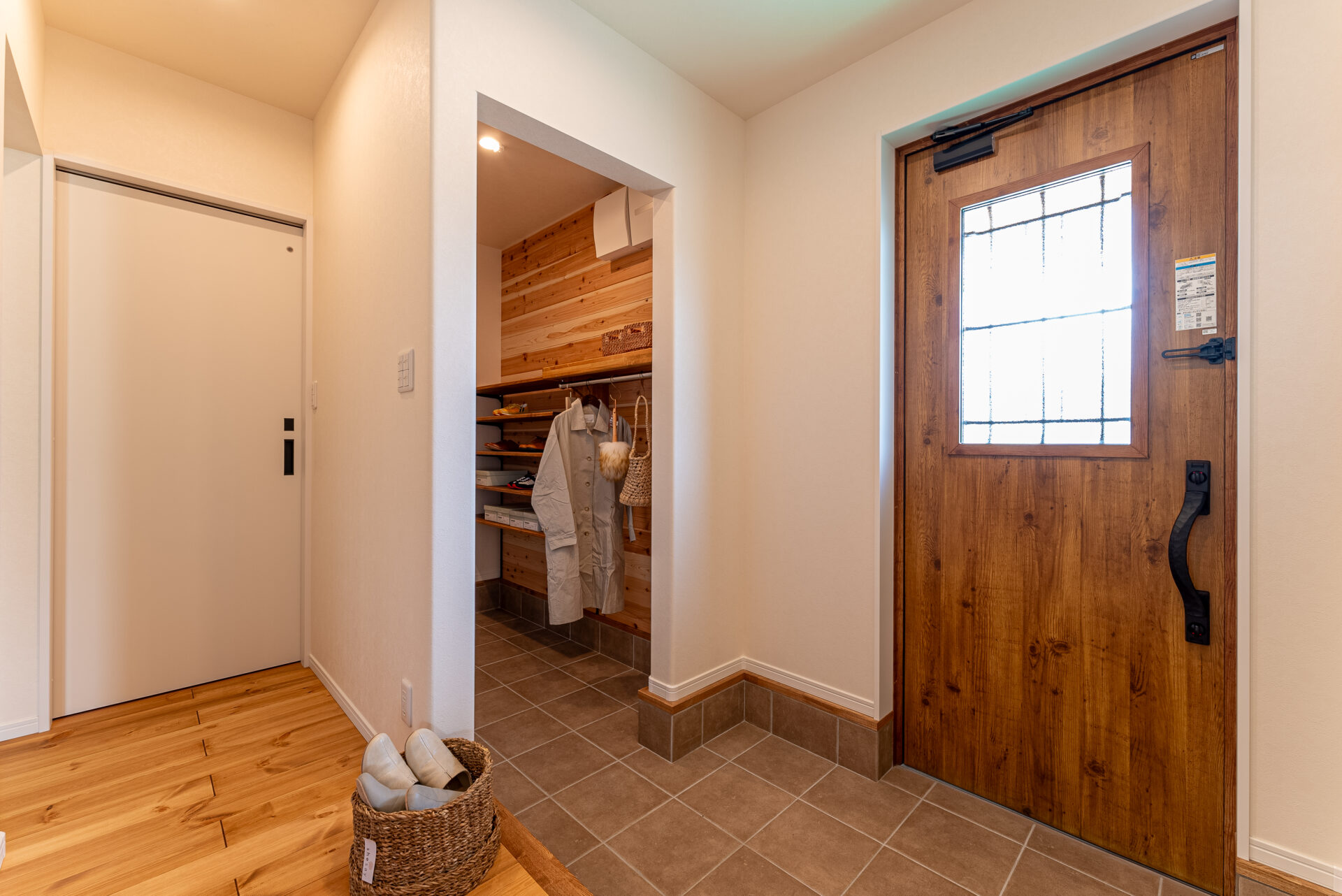 玄関の奥には、広々としたシューズクローゼット。靴はもちろん、コートや趣味の道具までまとめて収まるゆとりある収納が、暮らしの余白を生み出します。 家の「顔」となる玄関だからこそ、いつでも美しく整えておきたい。急な来客にも、自信を持って迎えられる住まいです。