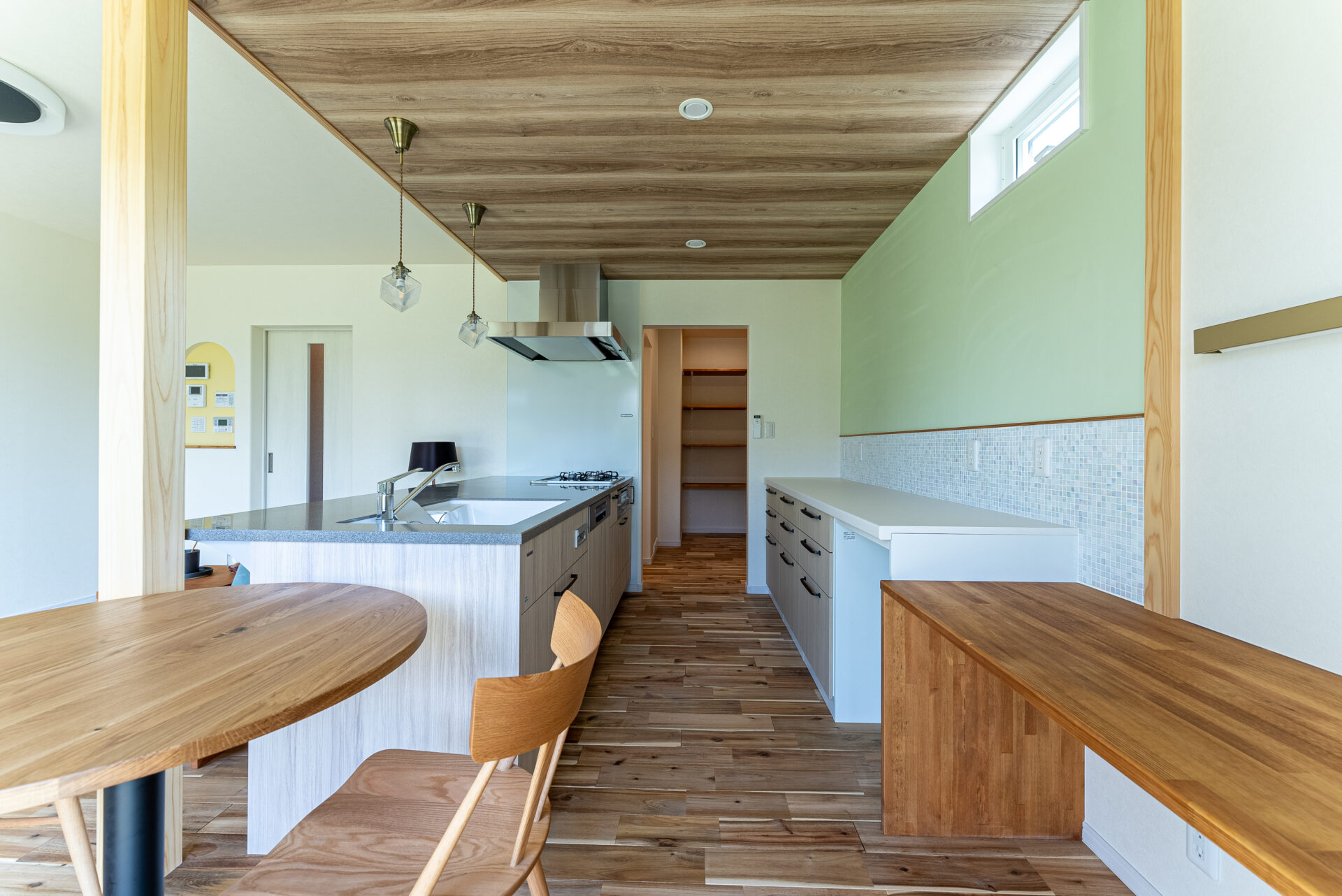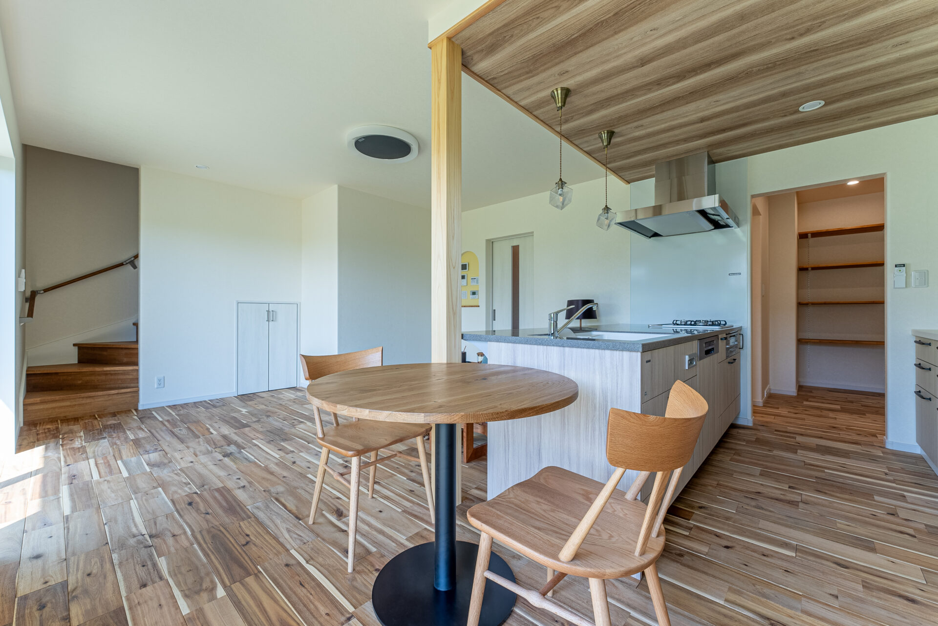 快適な動線と広々としたパントリー、自然素材が作り出す心地よい空間。オールアースやWB工法、サイエンスウォーターで一年中快適な環境が整っています。