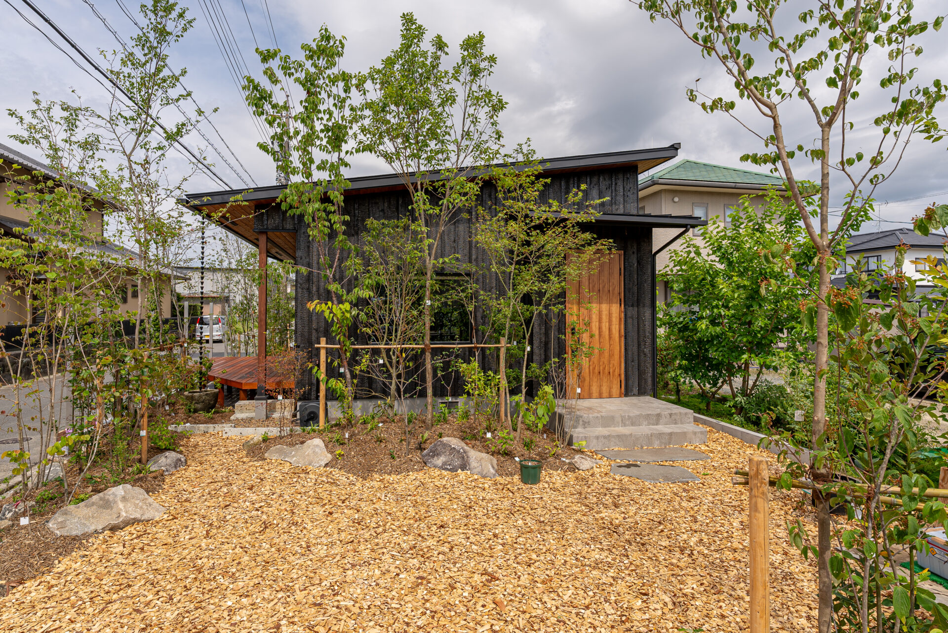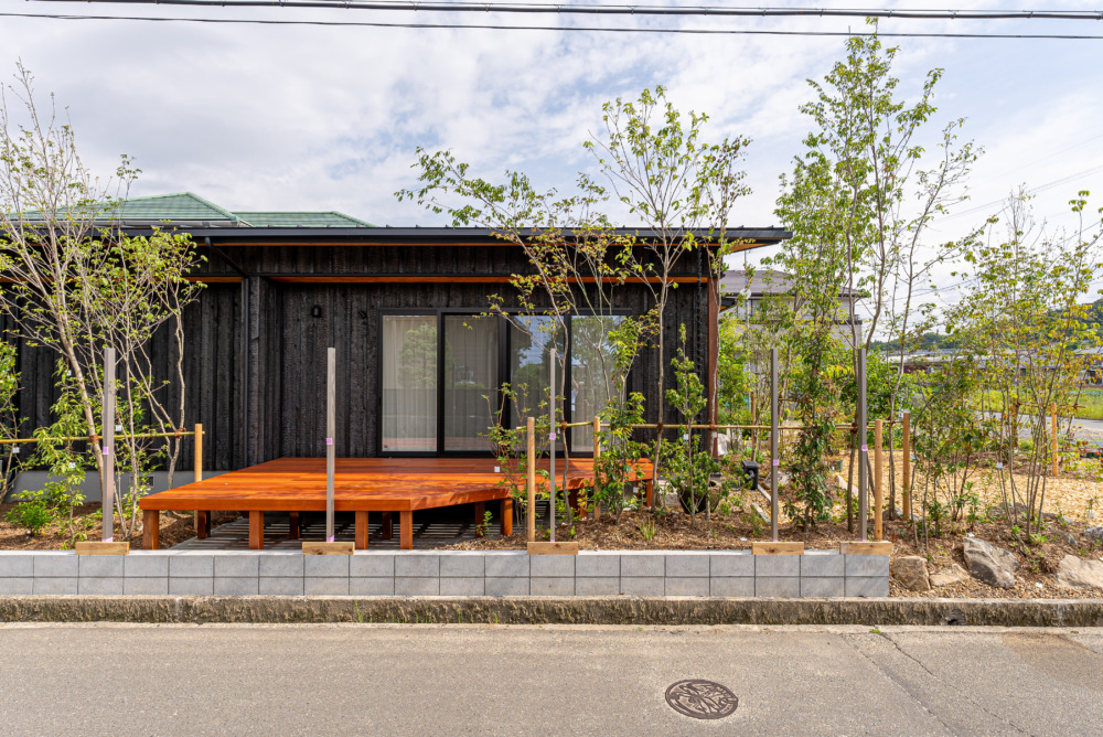 焼杉外壁の平屋二世帯住宅
