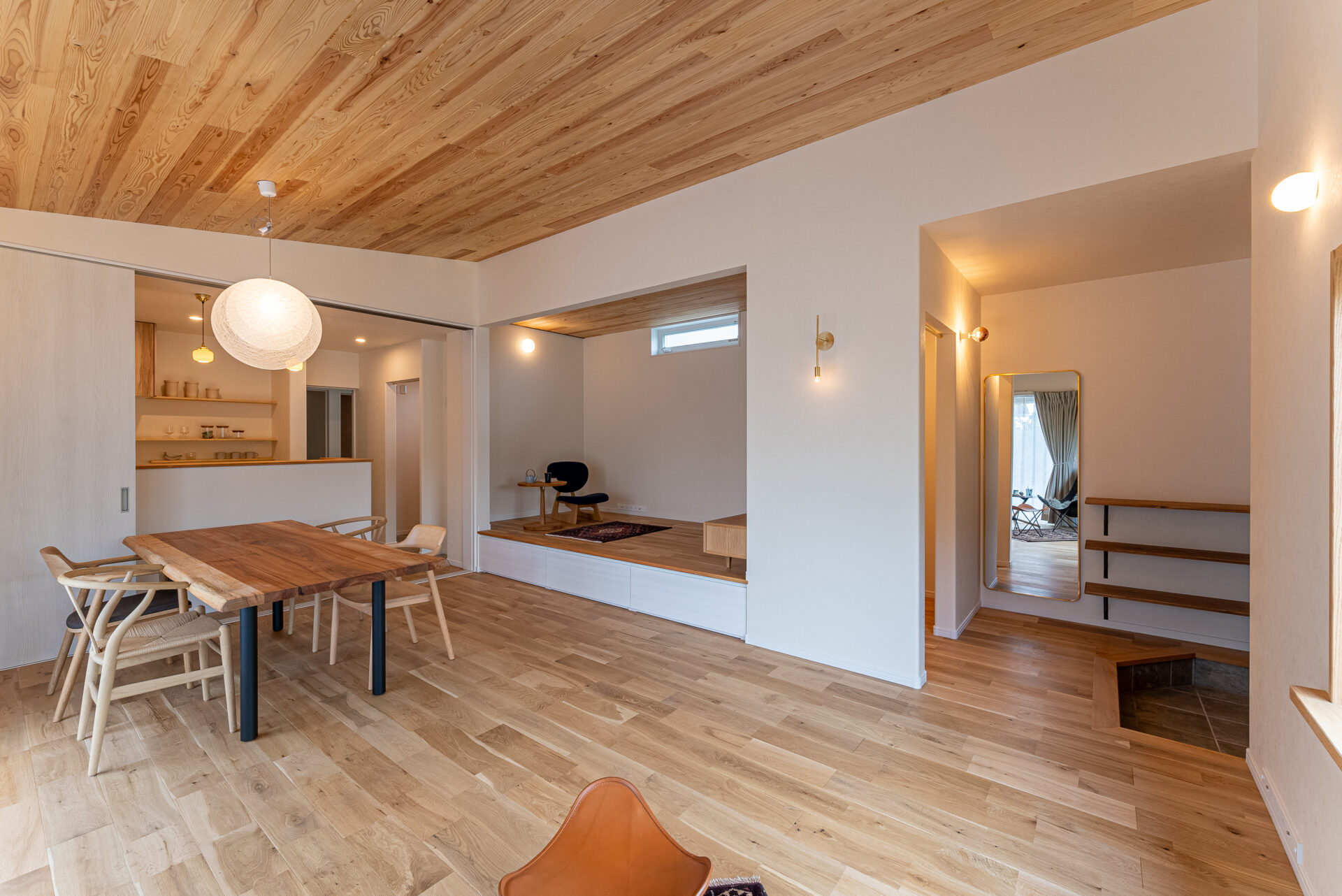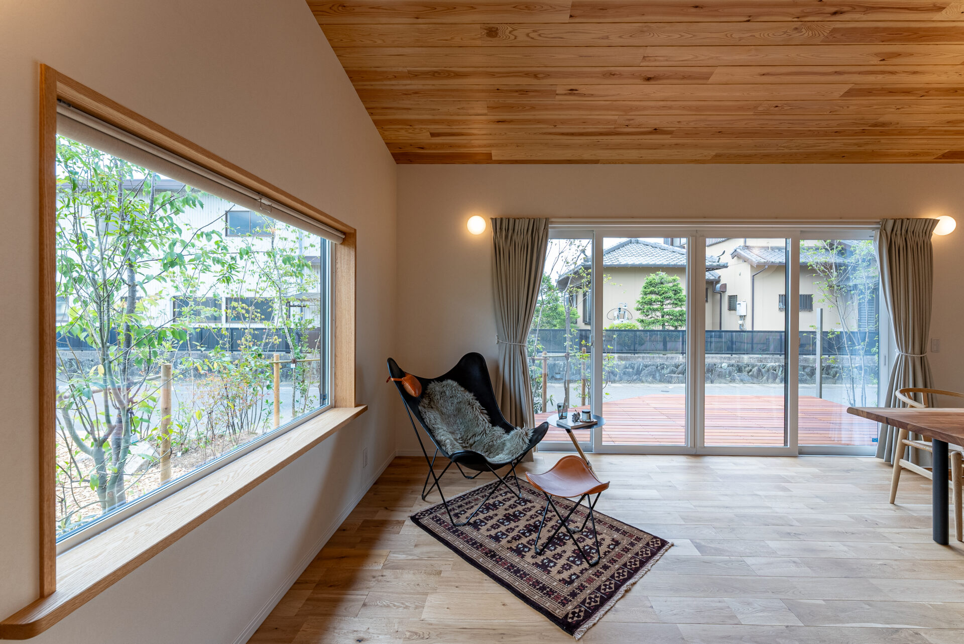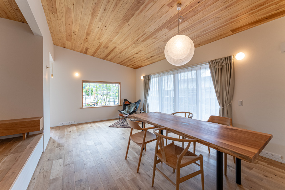 外壁から意匠性・耐久性に優れた自然素材の焼杉を使用。もちろんお家の中も自然素材にこだわりました。